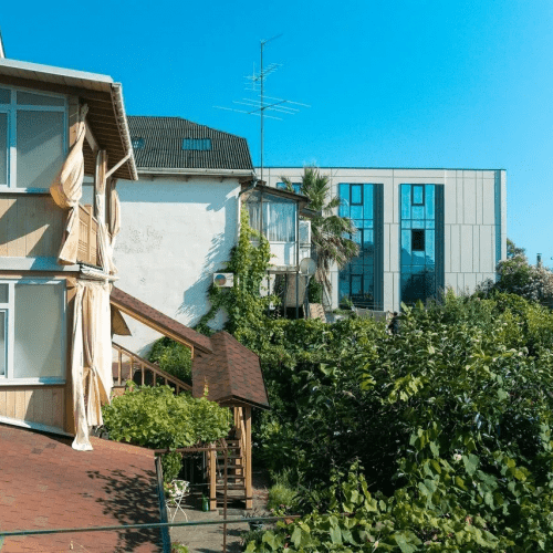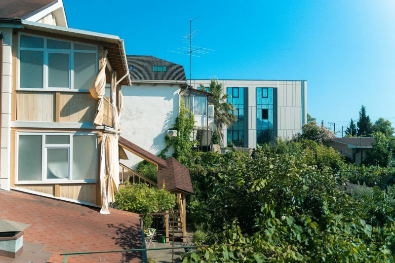 Самолетом до аэропорта Адлер, далее на автобусе №105, 105а, 105с до остановки «Пансионат Знание». Затем 700 м до гостевого дома.